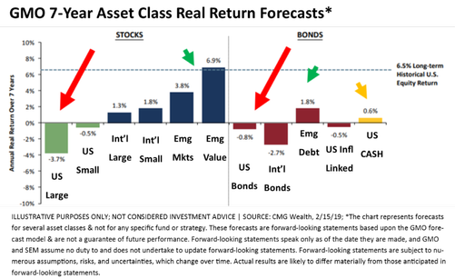 has been the number one determinant of longer-term investment returns. Valuations are subjective as are market forecasts. At SEM we choose to focus on DATA not opinions. This is the reason we will use the expected returns from GMO in setting long-term expectations for clients and advisors. GMO takes the current valuation levels for all major asset classes and applies a multiple regression model to forecast the overall annualized returns for the next 7 years. They have one of the best track records we’ve seen.