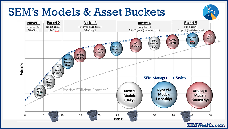 5.) With SEM we have three distinct investment styles (tactical, dynamic, and "strategic*). By blending the 3 into one portfolio you get a sophisticated blend of essentially 3 different investment managers. Each serves a key role in the overall portfolio.