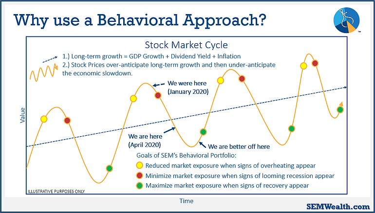 3.) SEM's systems have once again been battle-tested. While we've never had a faster 30% sell-off in the stock market to test against, every system performed exactly as we expected. For the past six weeks, our portfolio management team has spent most of our time stress testing all of our systems, evaluating all of our investment fund options, and running through scenarios we've never seen before as a precaution. While the inner-workings of our systems are highly complicated, I've drawn out a flowchart of how our models will react in the two possible paths from here (the grey boxes show actions already taken). [Click on the image to enlarge.]