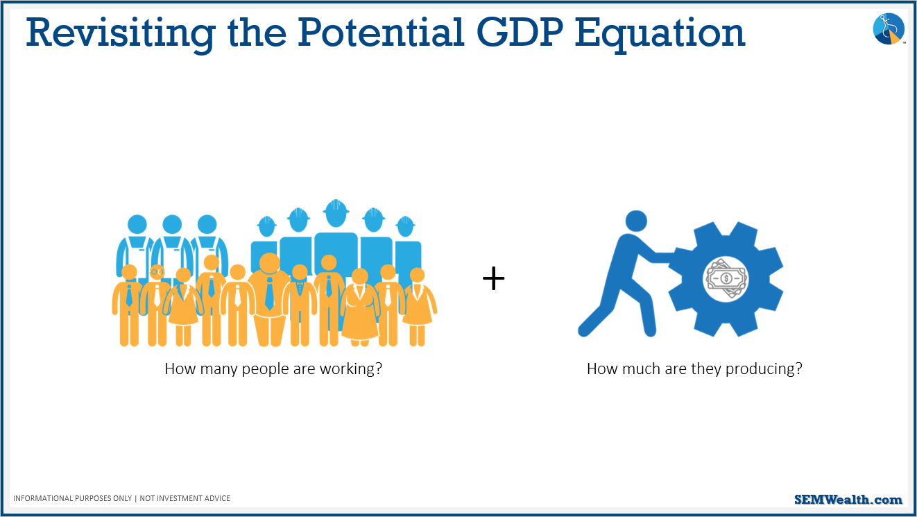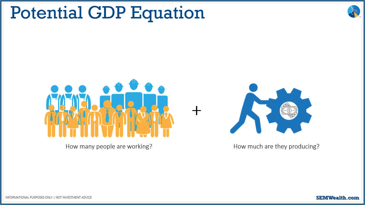 What really drives the economy? The slide shows a very simple mathematical equation that can be used to determine that. When it comes to economic growth, if we want 3% economic growth, we need to grow the labor force and productivity by a combination of 3%.