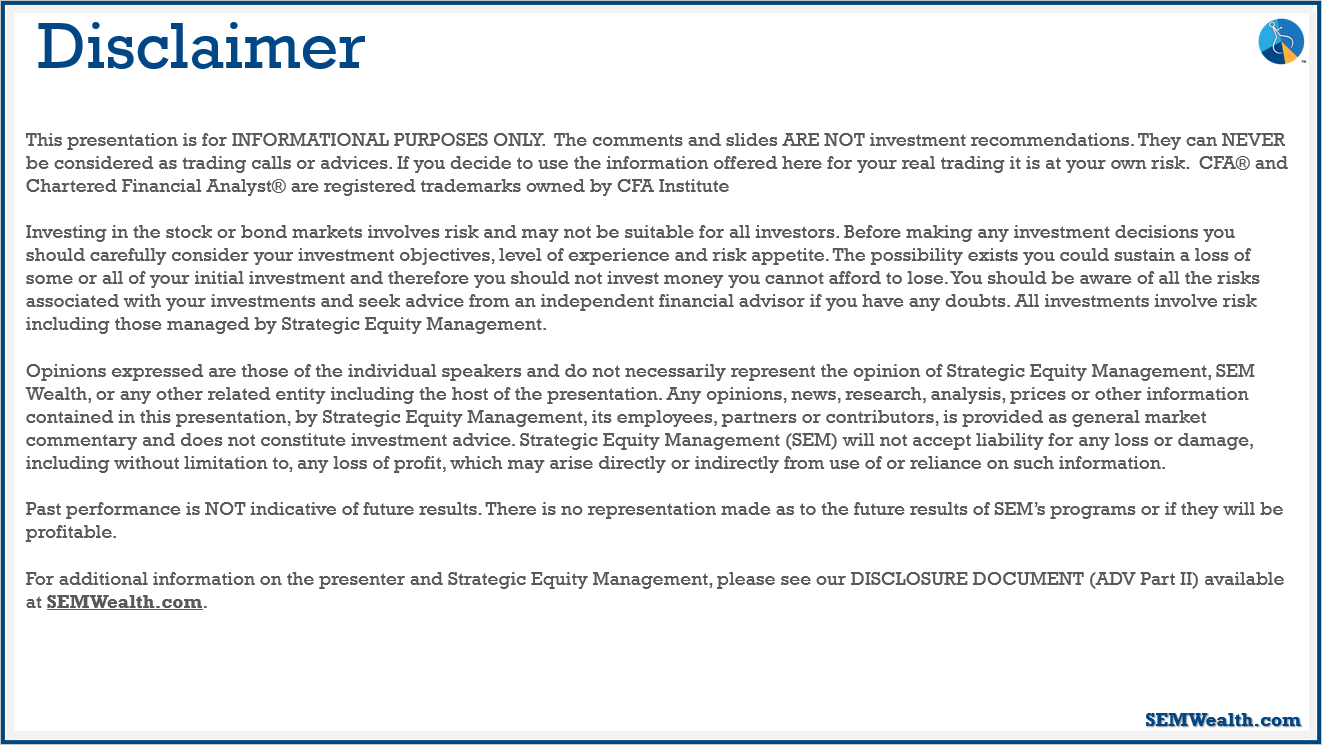 Did you miss our SEM University today? This presentation is near and dear to my heart because when I was in school, I struggled with economics classes. Our hope with this presentation is that we can help our advisors and clients understand how the economy works.