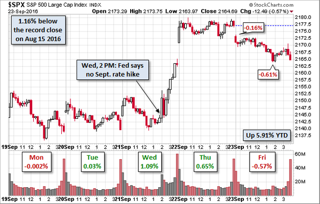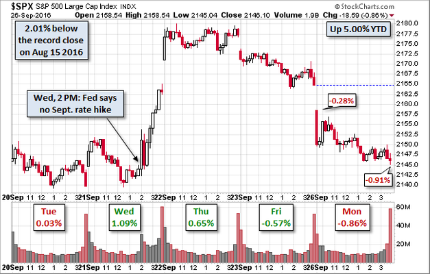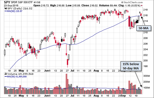 Stocks continue their see-saw action as there is no shortage of worries for market participants to focus on. Yesterday’s sell-off was sparked by the on-going fears Deutsche Bank may need a bailout. This morning stocks are moving higher on unconfirmed rumors the ECB is arranging such a bailout. Confused? So am I. From a big picture perspective, this is what you get when you have high valuations & a stretched financial system that has done little to fix itself following the 2008 financial crisis. Both sides of Congress rallying together unanimously to burn Wells Fargo at the stake is not helping market sentiment either.