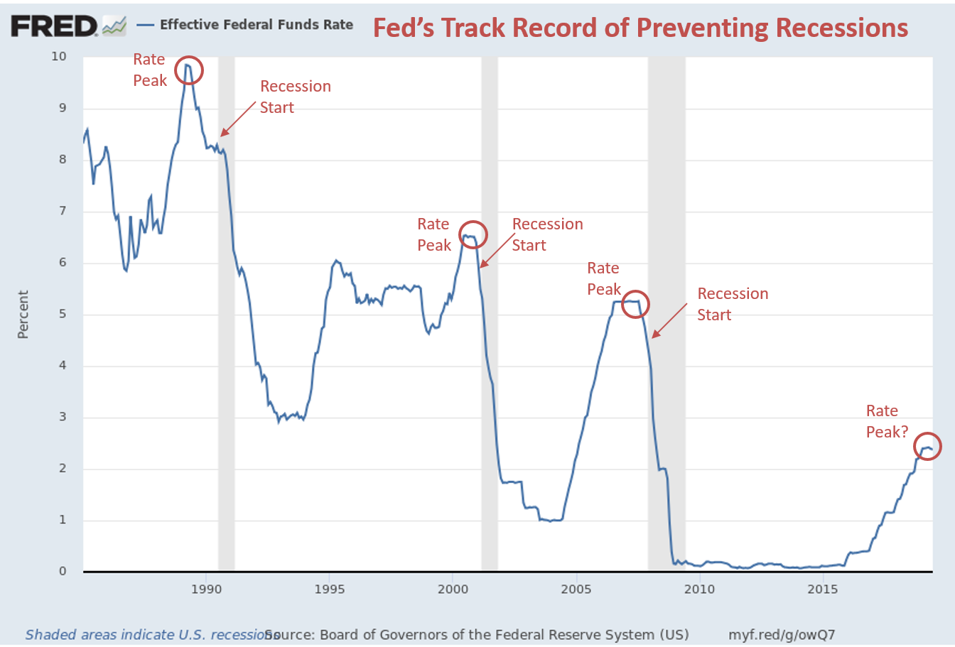 As a reminder, the Fed has a HORRIBLE track record of preventing recessions by cutting interest rates. In each of the last 3 recessions, the Fed started cutting rates BEFORE the recession started. It didn’t matter. It was too late.