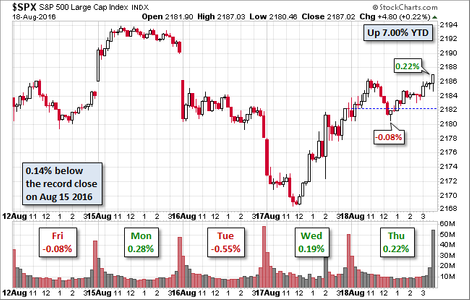 The waffling continues this week. Stocks made small gains on Thursday on low volume. This chart from Advisor Perspectives illustrates the back and forth battle among market participants.