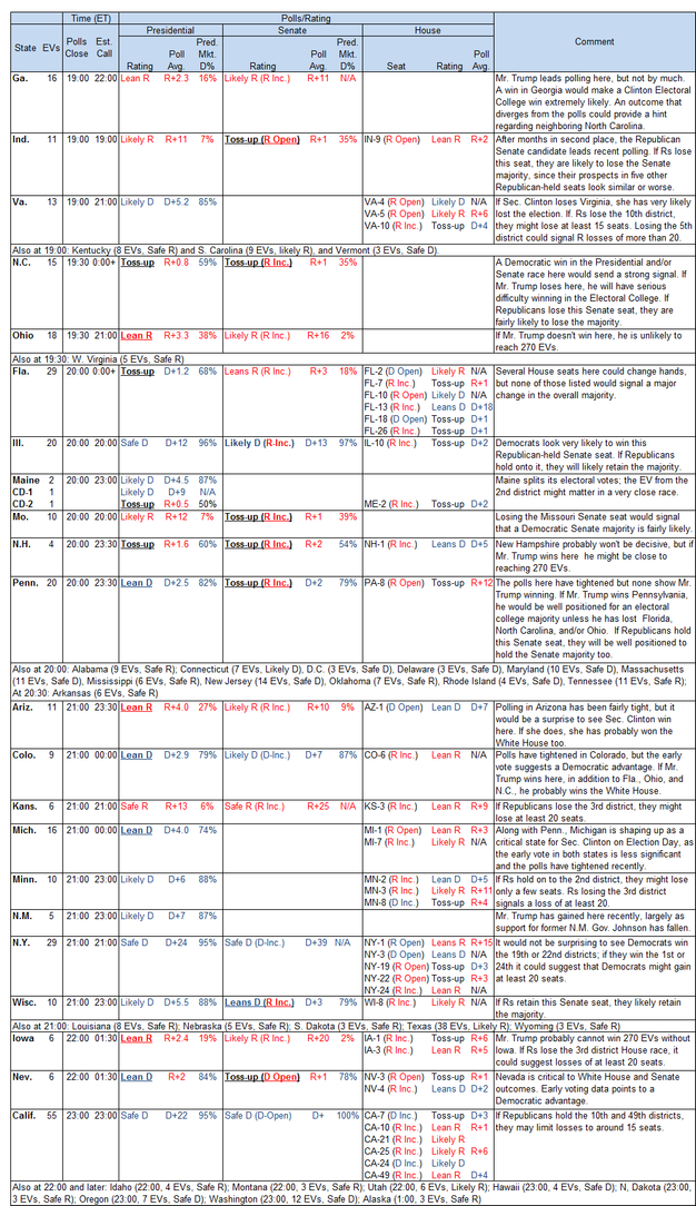 For those of you wanting the intricate details on election day, Goldman Sachs (as usual) provides the most thorough analysis. They warn that the polls and prediction markets are disagreeing in many swing states, which could lead to some incorrect “calls” throughout the day. Here is their minute by minute guide to election night.