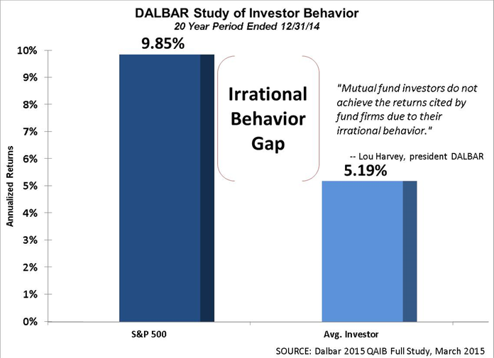 The DALBAR study is something I’ve been aware of since starting at SEM 19 years ago. Regardless of the time frame studied, the results have been the same — individual investors do not keep up with the markets because their emotions get the best of them.