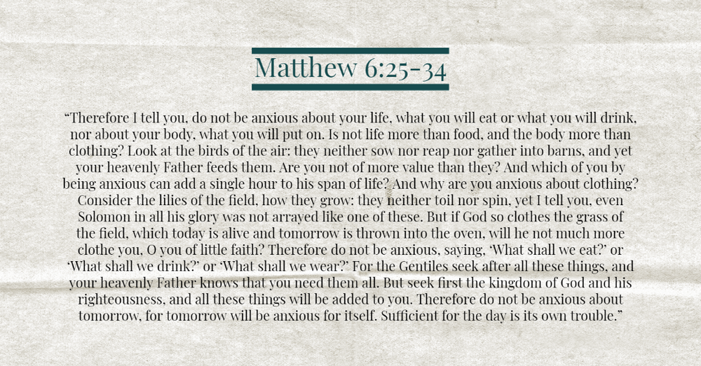This passage was in our last Biblical finance blog. It talks about God caring about even the birds of the air, and how much more He cares for us; therefore, we should not be anxious/worry.