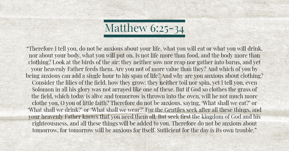 We must understand that we have three certain fixed needs: food, clothing, and shelter. Matthew 6:25-34 discusses these needs: