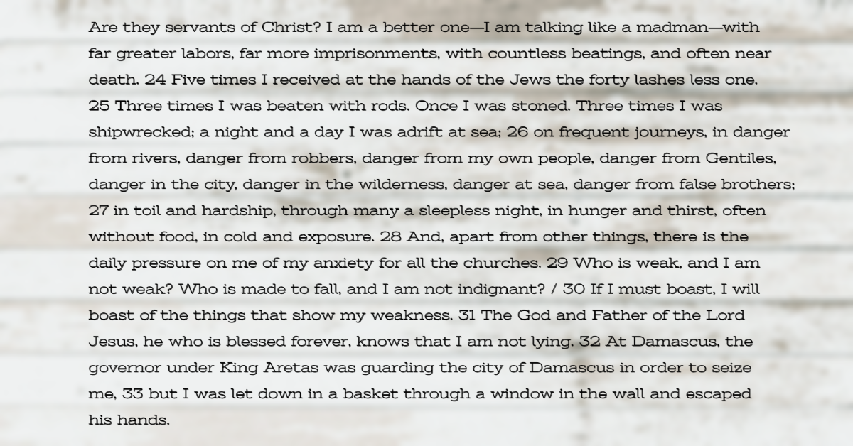 We looked at 2 Corinthians 11 at all of the suffering Paul had to endure:
