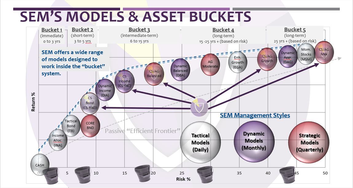 All of that to say, we have different model options which are designed to meet a range of risk and return objectives. Just like our other SEM models, the higher the desired returns, the higher the risks. Below is the same bubble chart showing just the Cornerstone Portfolio options.