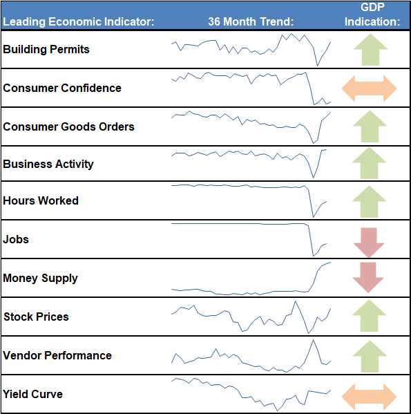 Our economic model remains negative – barely. Let's take a look at some of the indicators to get a feel for where things stand.