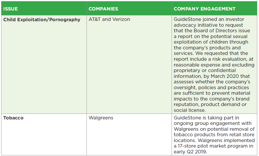 GuideStone likes to be proactive in advocating on behalf of their clients’ faith-based values. A couple examples of what they’ve been doing can be found below. For the full “Shareholder Advocacy Update,” click here.