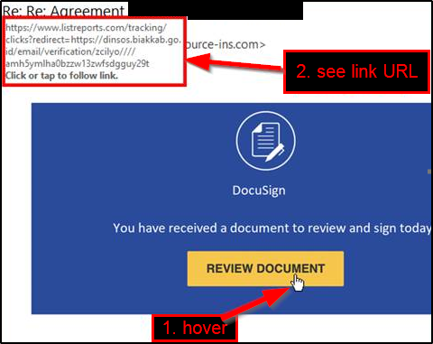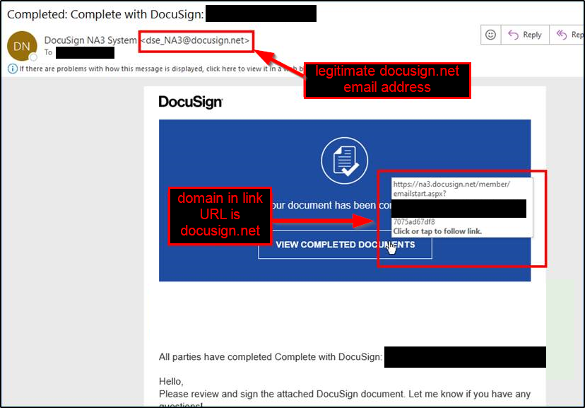However, with DocuSign in particular, the link will always go to a URL whose domain is docusign.net. Notice that this isn't the case here: