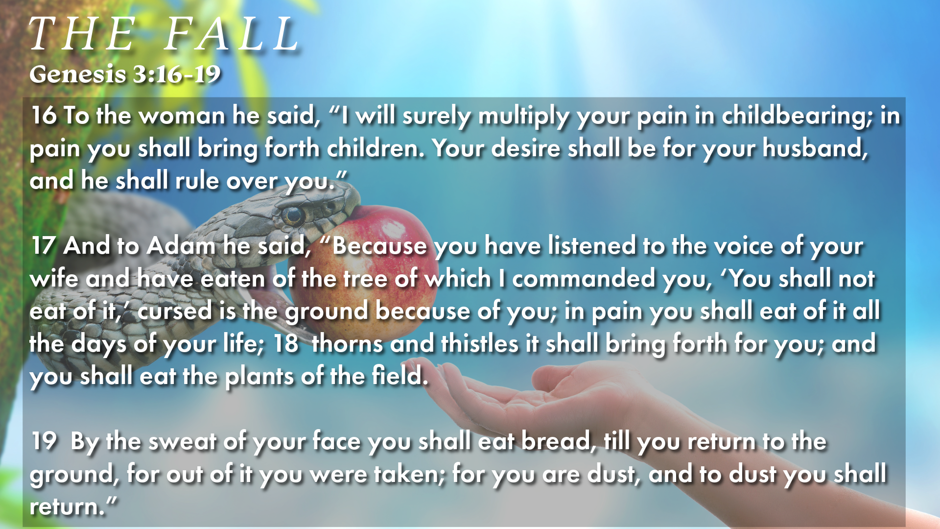 We see in Genesis 3, as soon as Adam and Eve sinned, they experienced shame, guilt, and brokenness. Shame, mistrust, and fear of others came about after this. They realized they were naked and made coverings for themselves so others wouldn't see. Again, sin impacts every area of our life. Beyond the negative emotions like shame that Adam and Eve felt after the fall, they were told of the other problems they would now have to face.