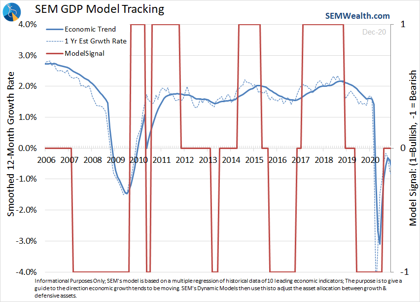 It has done an excellent job warning us about looming economic weakness. It helped us avoid the 2008 collapse and the near recessions in 2011 and 2015/16. It also helped us identify the weak economy that COVID attacked and had us safely positioned last winter well before COVID made news headlines. This recession was obviously one like we've never seen and gave us a chance to stress test our models.