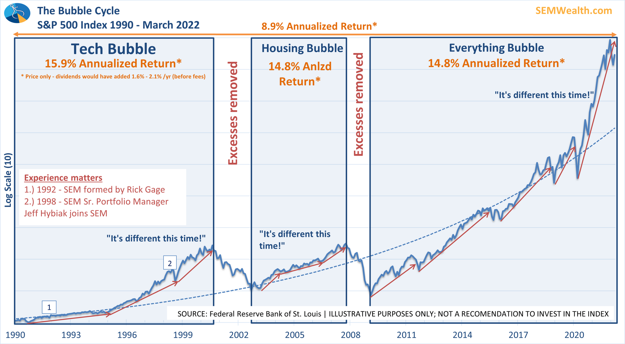 When you combine the supply/demand disruption with inflation and rising interest rates we are looking at a situation that very few people remember in their investment lives. Many people in 2021 were saying, "it's different this time," which is always a dangerous thought. A study of market history and my experience tells me it is never different this time. Markets get way ahead of the fundamentals and then some sort of event causes those excesses to be removed.