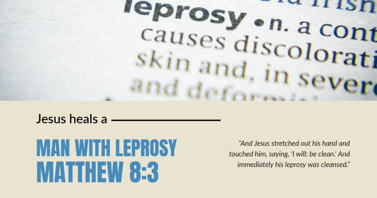"And Jesus stretched out his hand and touched him, saying, 'I will; be clean.' And immediately his leprosy was cleansed." - Matthew 8:3
