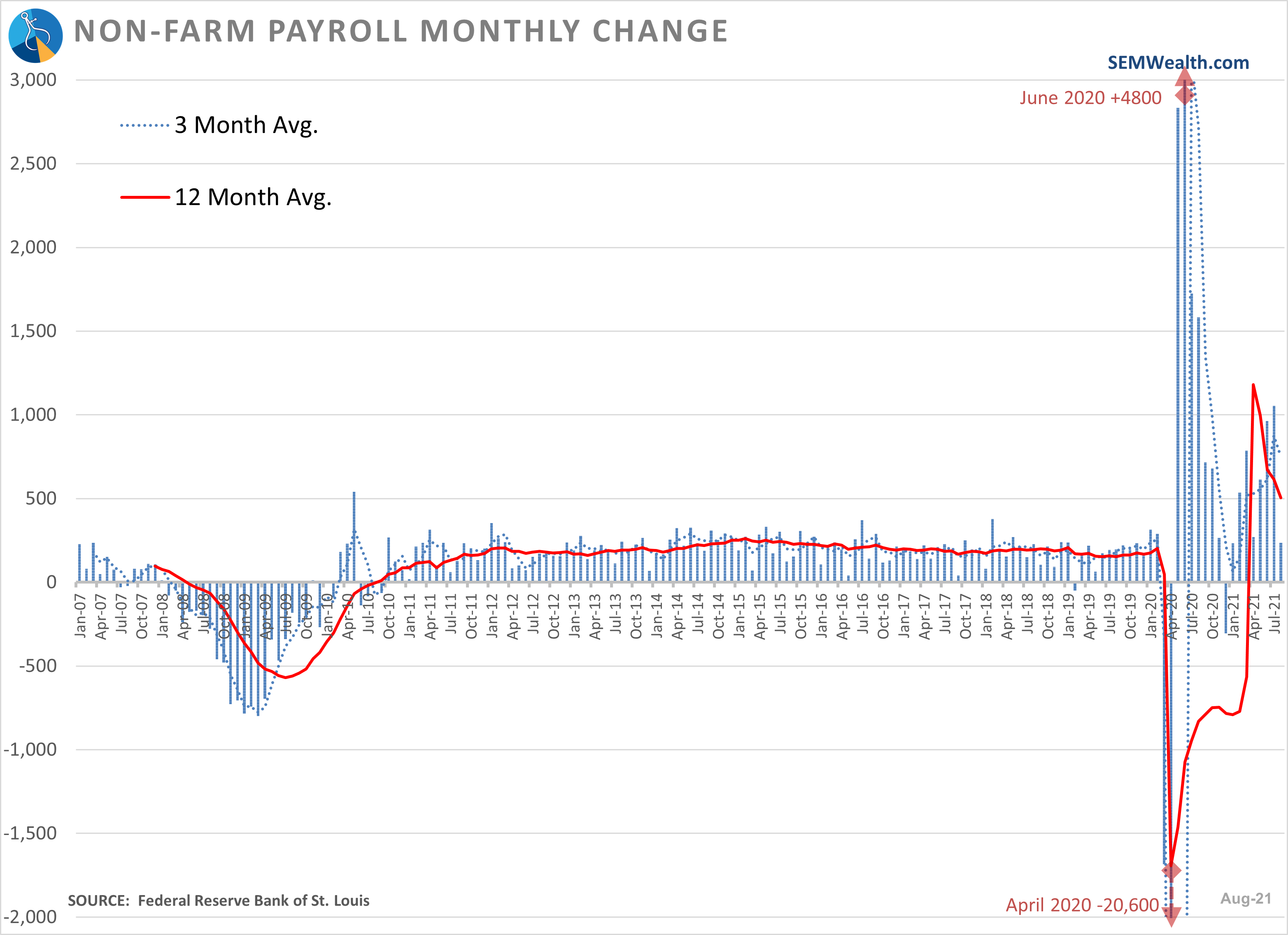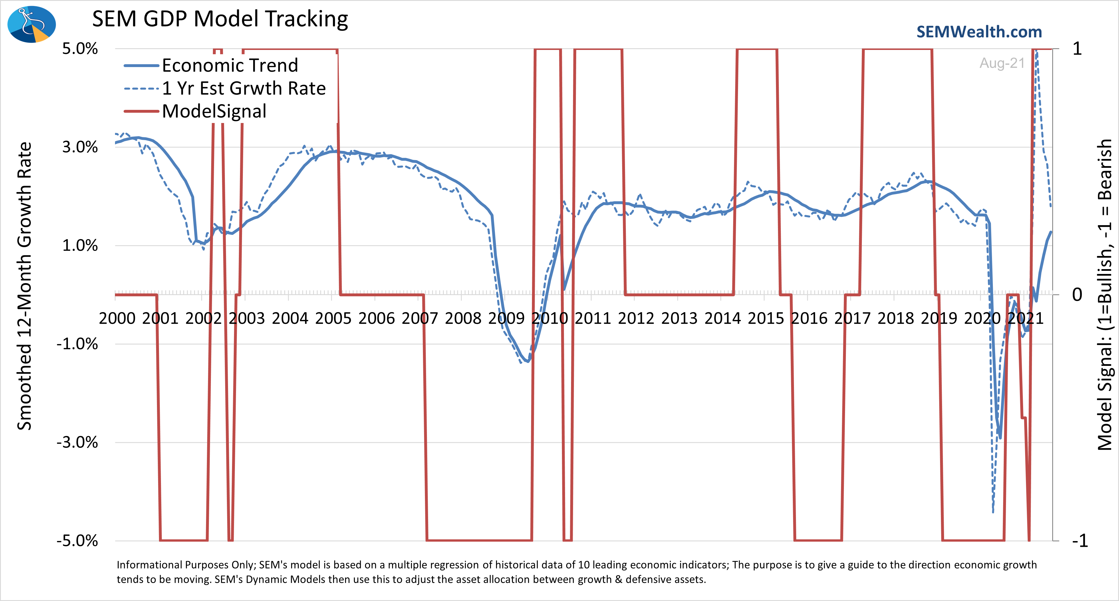 SEM’s dynamic signals did have new economic data through the payrolls report to analyze. Those payroll numbers continued to point upward, which leads the dynamic signals to point bullish. But, the growth of payrolls continue to shrink, which means that those bullish signals are only barely within that signal. We are very close to moving toward a neutral signal, which will likely flip in the upcoming months if we see another decrease in the rate of payrolls (and other economic data points.) That part is key.