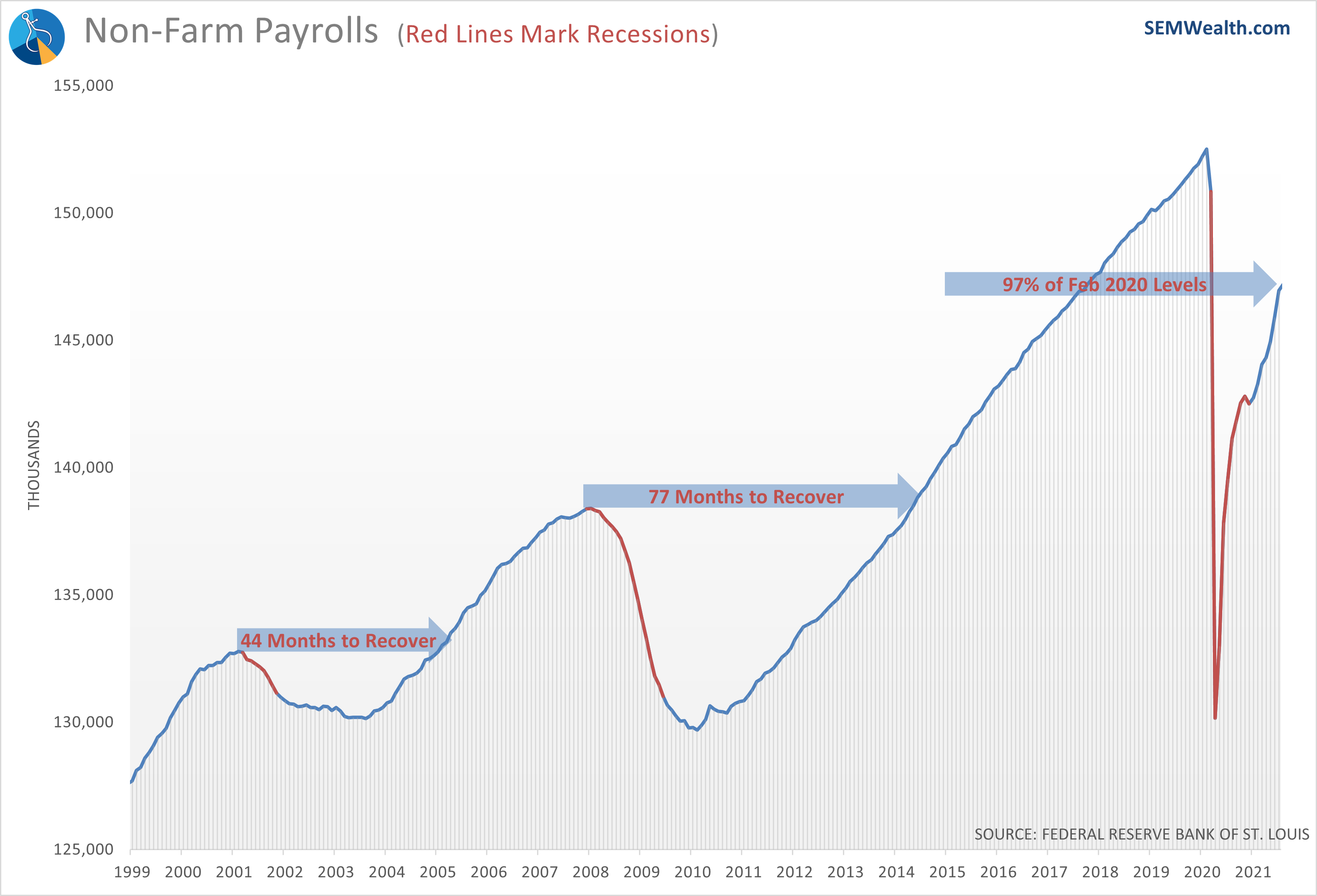 We are still only at 97% of where payrolls were at in February 2020, so there is still room within our economy to see a little more growth before hitting our ceiling. How quickly we get there will be a factor on how we see the market heading for the future.