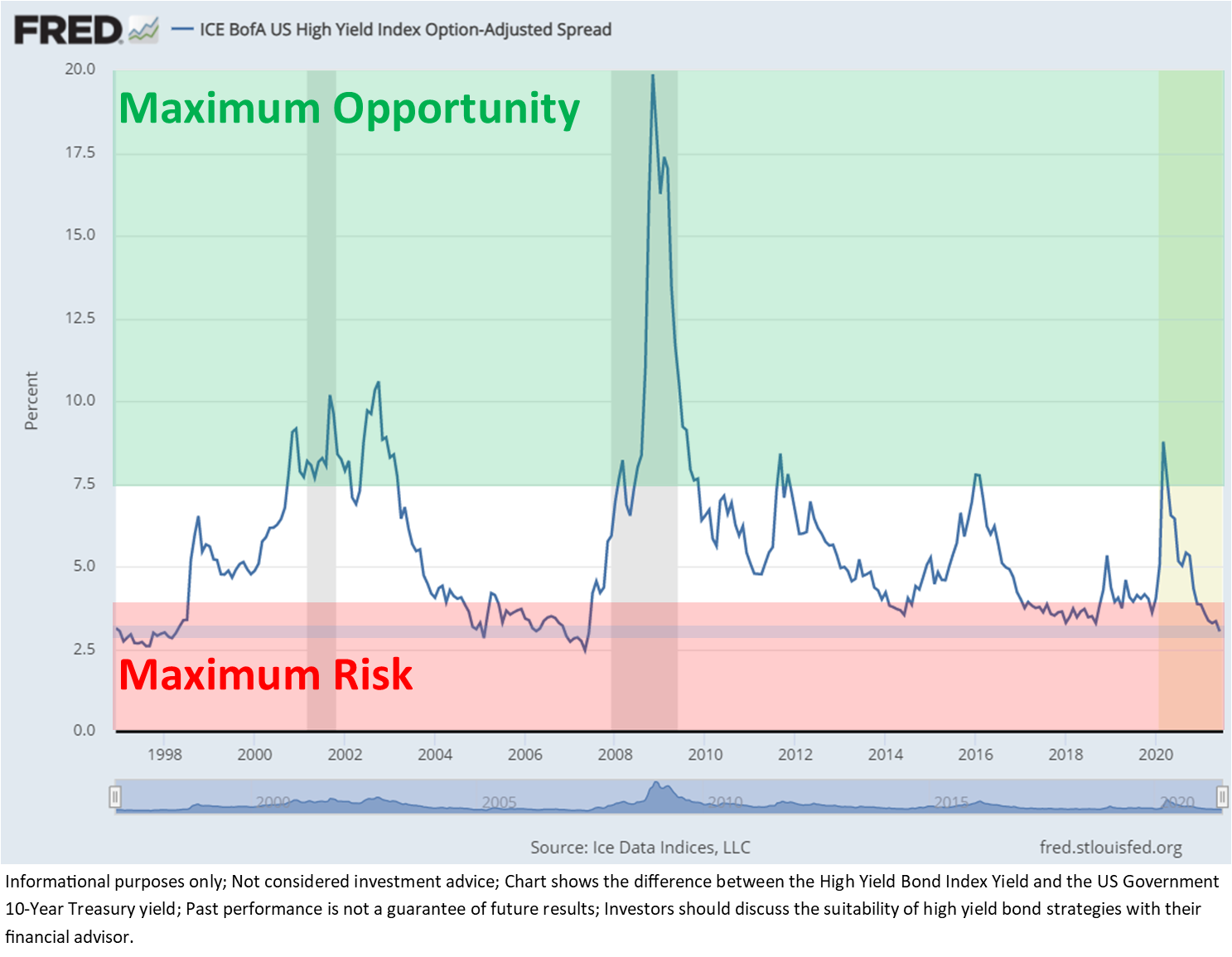 We are quite pleased with our returns in 2021 thus far. The aggregate bond index is down nearly 2%. The fact our conservative clients are up 2% is a win, in our opinion. Our models are designed to wait patiently for better opportunities, especially for our most conservative clients. When we have low yields in both stocks and bonds, this becomes an especially dangerous situation for conservative investors. We discussed this in our 2nd quarter newsletter.