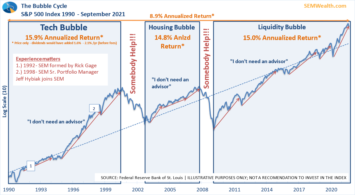 I don't want to be a downer as we head into Thanksgiving. We have plenty to be thankful for, including the spectacular returns we've seen in the stock market this year. The Federal Reserve and Congress acted so quickly and in such a coordinated fashion they literally saved the economy from disaster back in 2020, but they also have created a massive bubble in risk taking. Stimulus has to be paid back either by below average growth in the future or a big reversion back to the mean. Obviously neither is good for those with less than 10-year time horizons or especially those just now jumping into the markets.