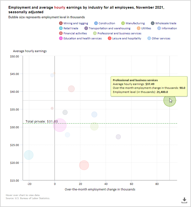 On the bright side, the largest sector for employment growth was professional and business services, which also includes above average hourly wages. This breaks the nearly year long trend where the biggest increases came in sectors with below average wages.
