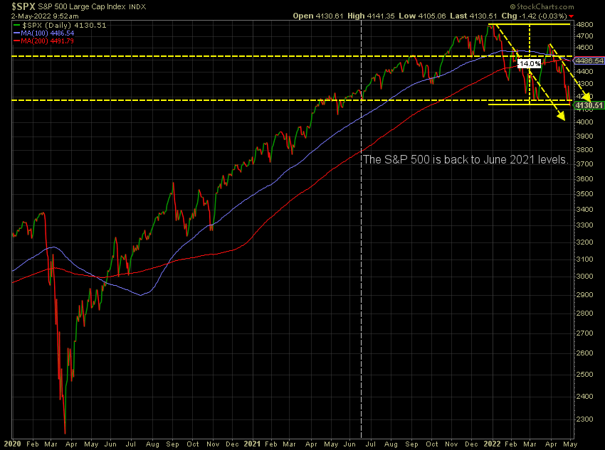 This chart here notes some key events over the past 6 months. We are now threatening to see the markets below the post-Russian invasion levels of February 24.