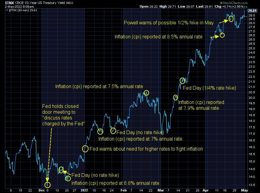 The free market has been saying inflation is a problem and rates needed to move higher. The move up started when the Fed held a "closed door" meeting back on December 6. Why in the world the Fed continues to wait to fight inflation is beyond me. They should have been hiking rates a year ago when the last stimulus checks started going out.