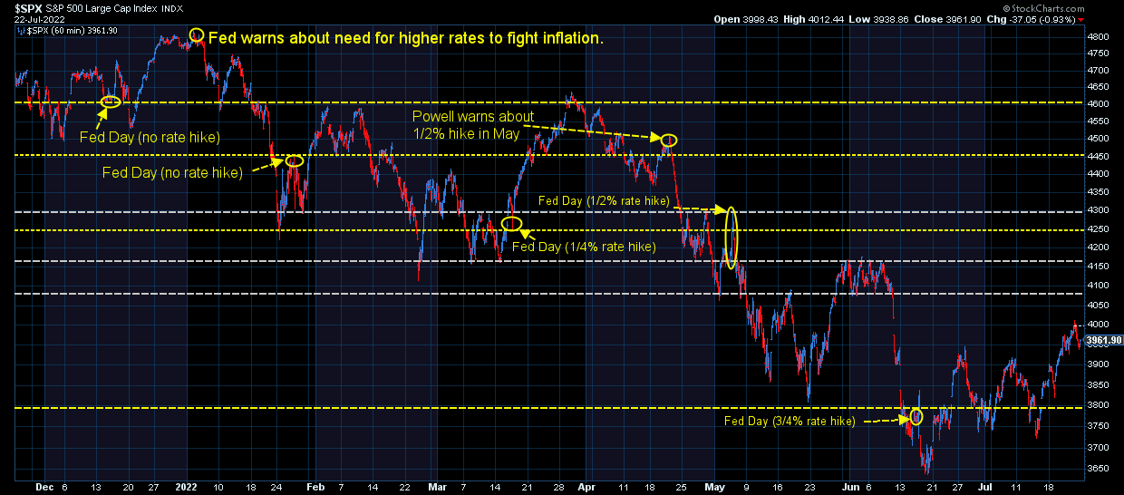 Stocks rallied under the hope the weaker economic data would mean the Fed is less likely to continue raising rates aggressively due to the slowdown in the economy. I believe that is a false hope as inflation remains stubbornly high even with a slowdown in commodity prices over the past month.