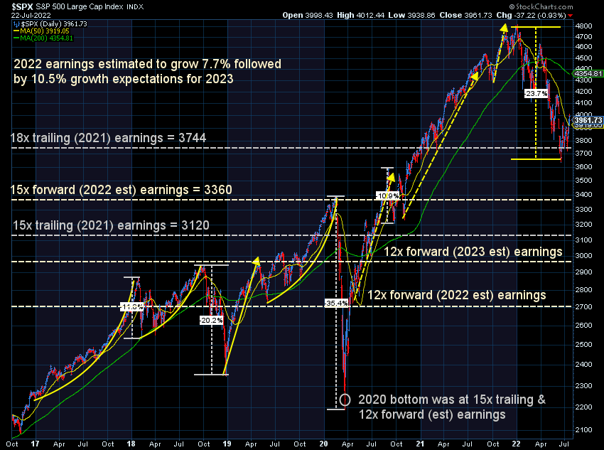 From a valuation stand-point, the S&P 500 is back in the "overvalued" category, trading at 20x trailing earnings & 17 times "forward" (2022) expected earnings. The long-term average is 18 and 15 respectively, so unless you firmly believe the economy is going to rocket back to "expansion" mode (above average growth), stocks are NOT attractive at these levels.