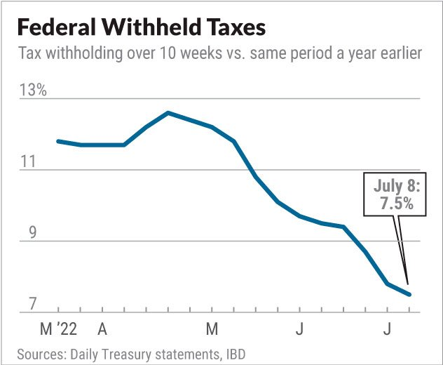 Digging even deeper, Federal Income Tax Withholdings show a much weaker jobs market than the Payrolls report indicated a few weeks ago.