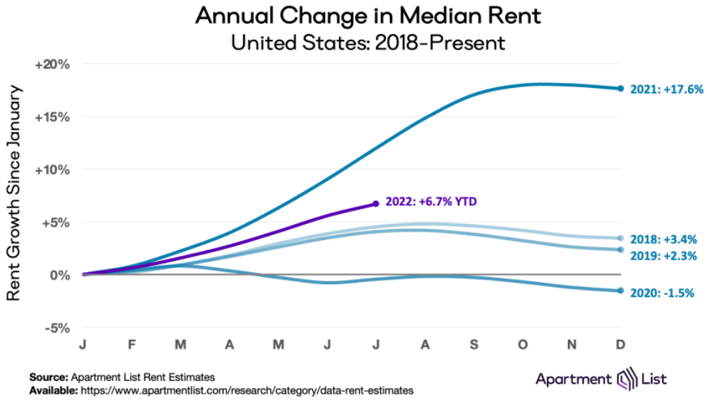 Rent prices are not going up as much as they did in 2021 (which wasn't reflected in CPI), but they are still running much faster than "normal". Note on this chart, they are up 6.7% through July, which means we are on pace for a +10% year.