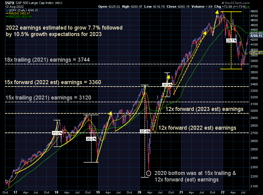 All of this means it will be close to impossible for CPI to get back down to the Fed's "target" of 2%, which means they are still going to be in "tightening" mode for quite some time. It's really hard to justify paying this much for future earnings on stocks when the Fed will be focusing on slowing growth down.