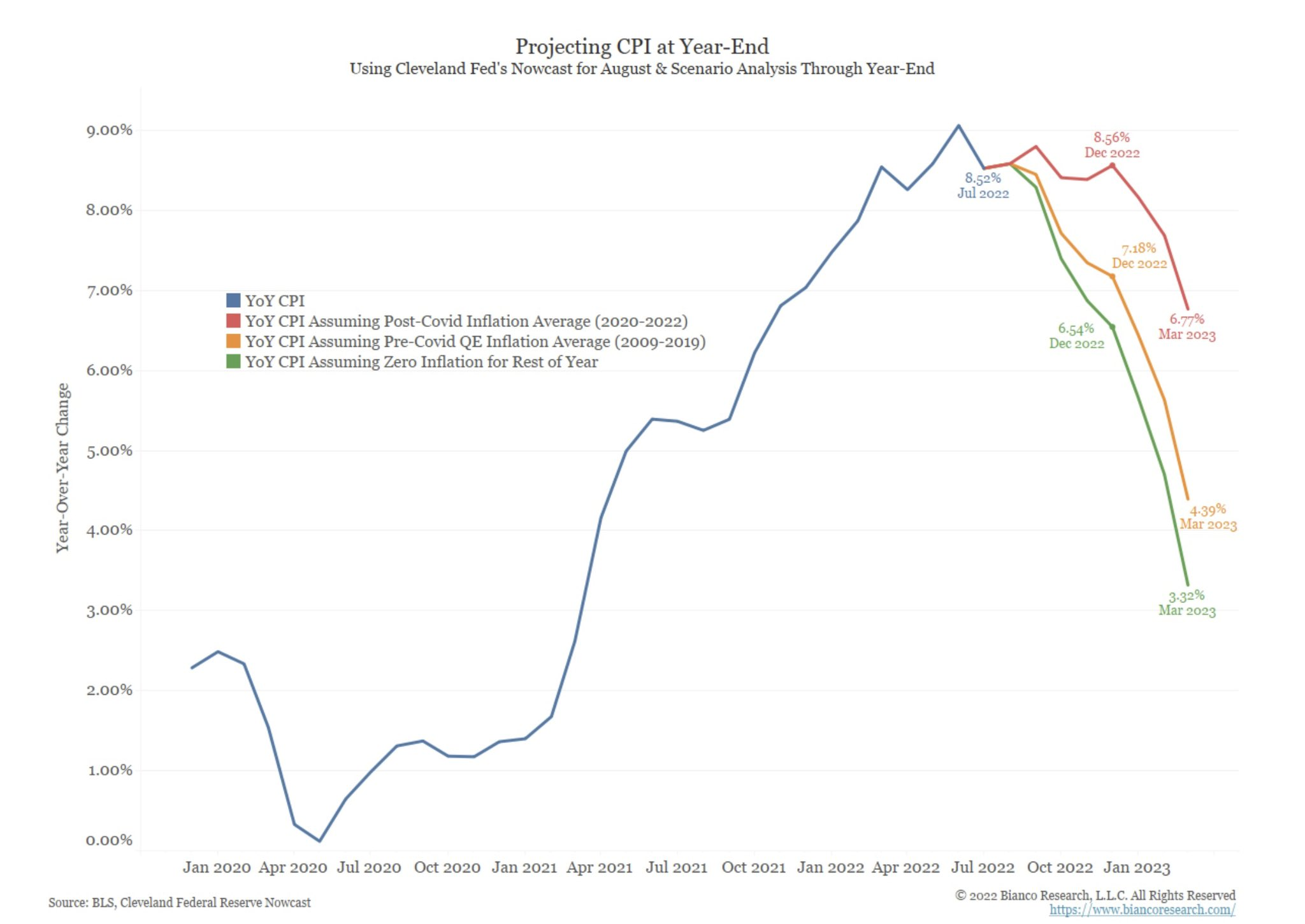 I think this chart shared on Twitter by Schwab's Liz Ann Sonders is fascinating. Look at the green line – if we had ZERO inflation through the end of the year, inflation next March would still be at 3%. If we return to the pre-COVID levels we'd be looking at 4% inflation. Post COVID average inflation would have us close to 7%.