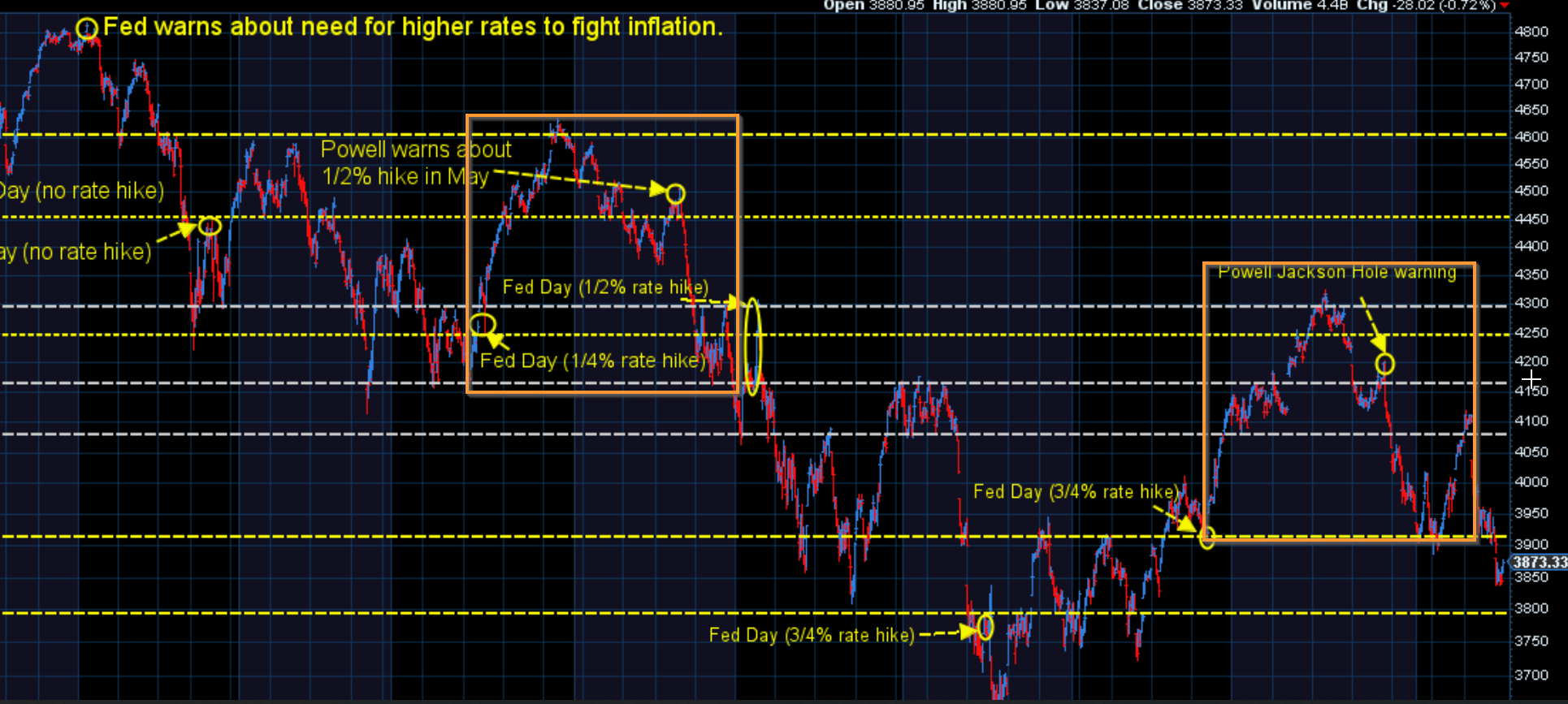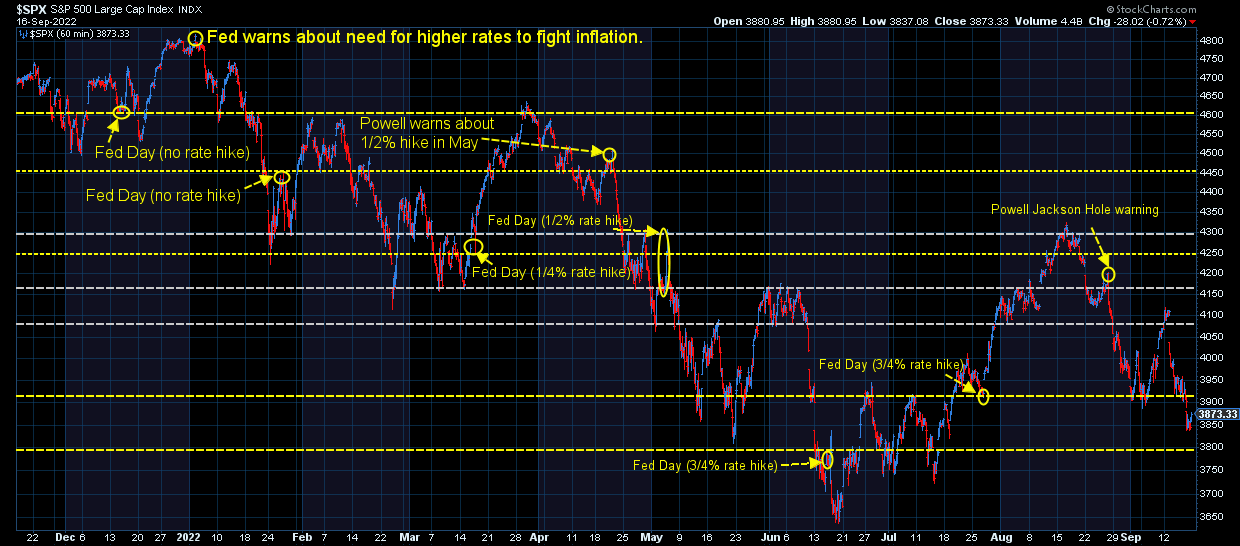 This continues to be my favorite chart to help keep things in perspective. It marks every piece of Fed news since the end of last year.