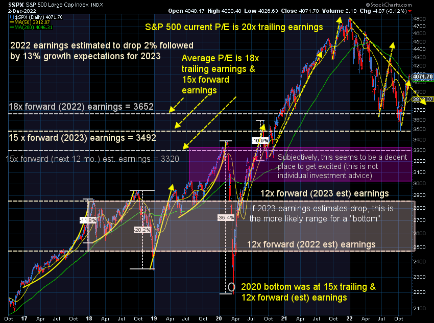 The downtrend line was broken last week, and the market is just barely above the 200-day moving average. As mentioned above, the valuations are not attractive at all (unless you believe we're going to see strong growth in 2023).
