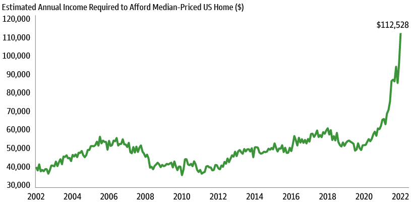 Speaking of housing, regardless of where you live, we've all seen how ridiculous housing prices moved since the start of the pandemic. Goldman Sachs sent this chart illustrating how difficult it is for the average American to afford a house. The median household income is just over $70K. Only 34% of American families make more than $100K per year. This will have longer-term ramifications for our economy.
