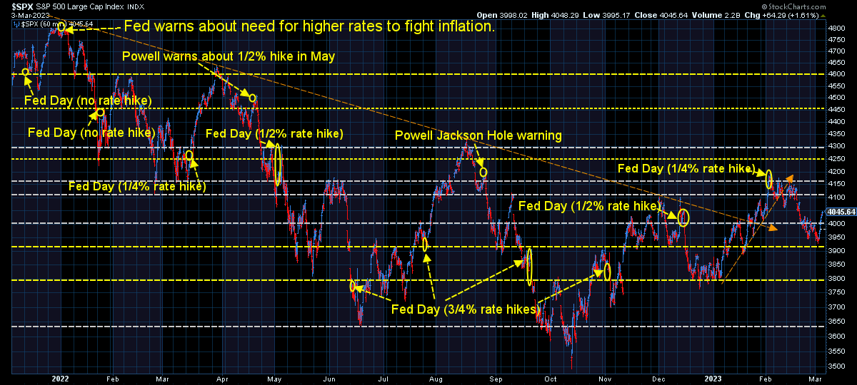 The head of the Atlanta Fed still indicated he is concerned about inflation, but when he said during a Q&A session following a speech on Thursday he is "open" to a "pause" in rate hikes, the market shot higher. He obviously does not set policy and just the day before said in an essay the Fed had "a long way to go." By nature, the market is eternally optimistic. The thought of a "pause" was enough to spark a big rally off the lows on Thursday and continue into Friday.