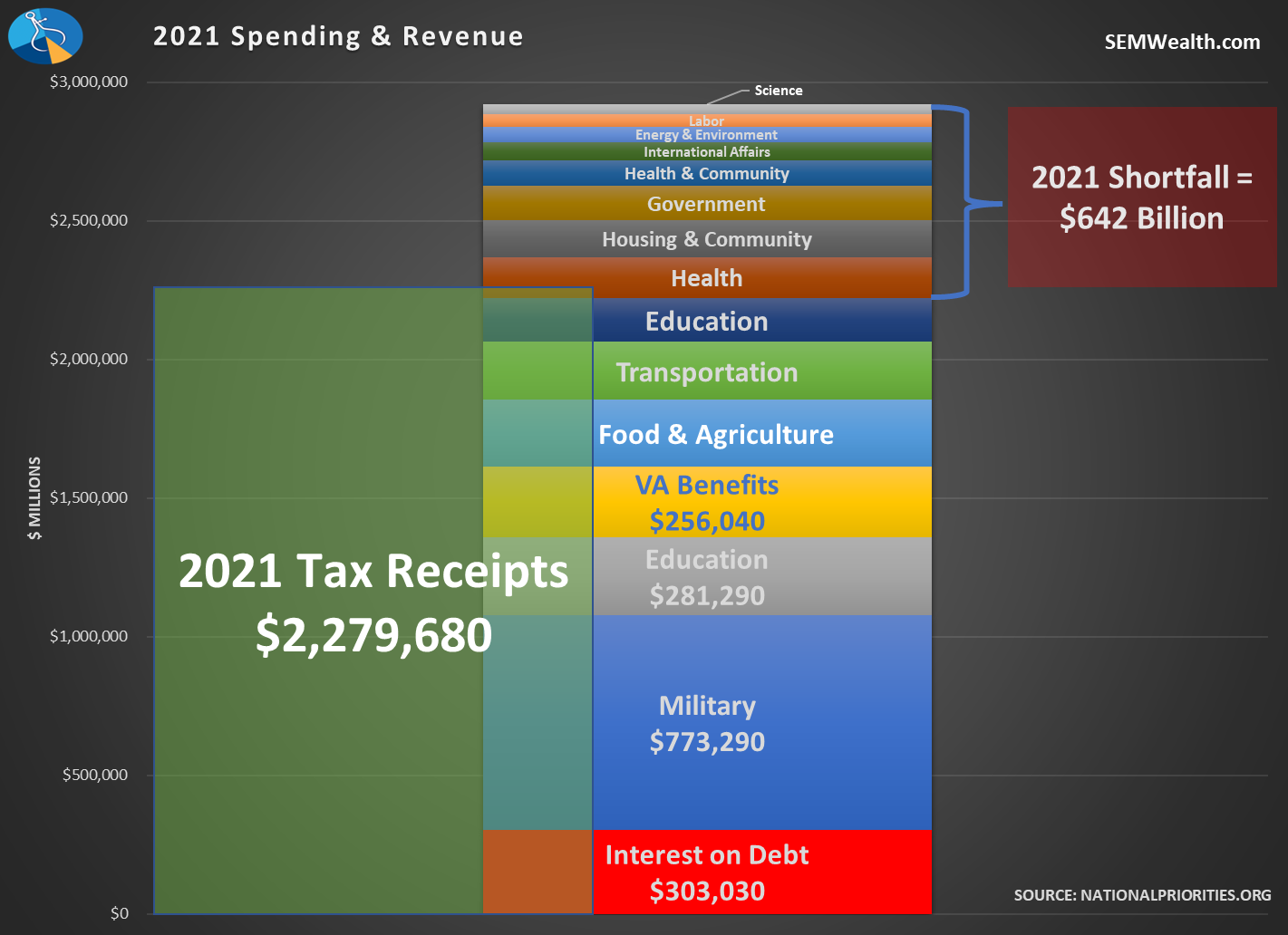 None of this commentary means I believe we shouldn't figure out a way to stop deficit spending, but neither side is willing to actually address our spending problem. If you ignore Social Security and Medicare, the gap, while still large, is not as bad as you'd think.