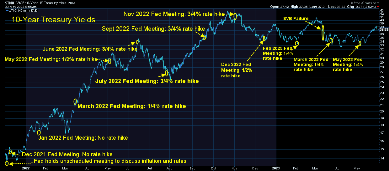 We've been posting videos on our various social media channels discussing this. The main point of all of them has been – if we refuse to do anything about Social Security & Medicare we may as well not have a debt ceiling. This "deal" means we will still be borrowing several trillion dollars a year. All it does is kick the can down the road to 2025 when the new Congress and winner of the presidential election get to do this all over again. (This is the same year the individual Trump tax cuts expire.)