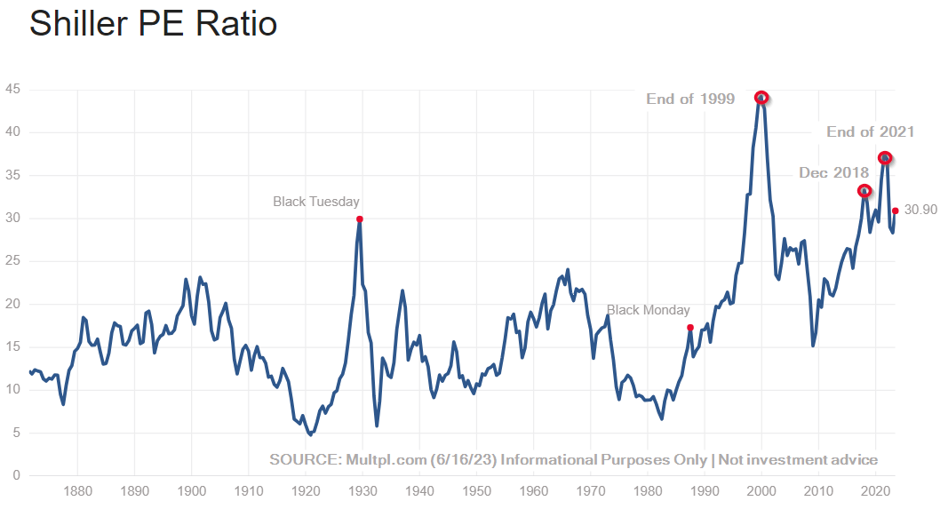 Valuation metrics are at a place where there is no tolerance for any sort of economic slowdown. A recession would crush stocks. The Shiller PE Ratio has again exceeded the level we saw just before the market crashed in 1929. The only times we saw a higher reading was in 1999, December 2018, and December 2021.