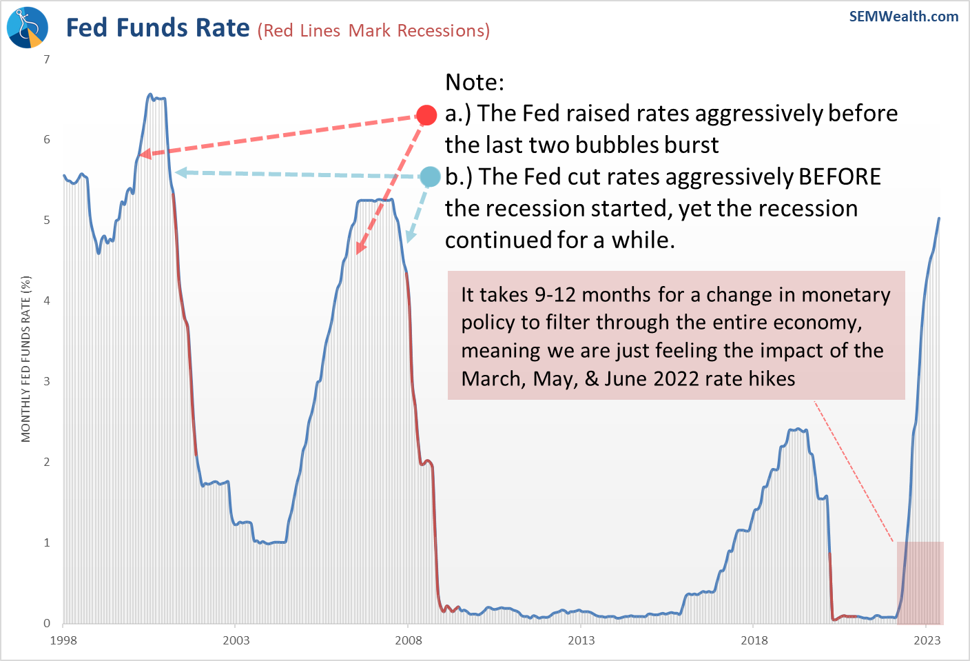 Even if the Fed is done RAISING rates, they are a long way off from cutting rates. Even if they cut rates, history tells us they cannot prevent a recession. By the time they cut rates it is too late.