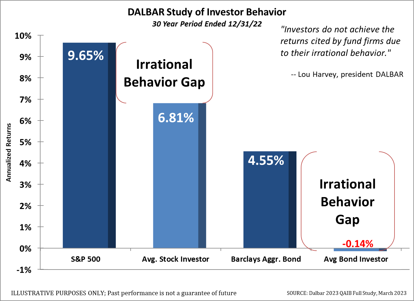 The average bond investor loses money because they continue to repeat the cycle of giving up on bonds and other fixed income investments after long periods of stock market gains only to jump to stocks just in time for the next bear market to begin. They then move back to bonds after the bonds have rallied.