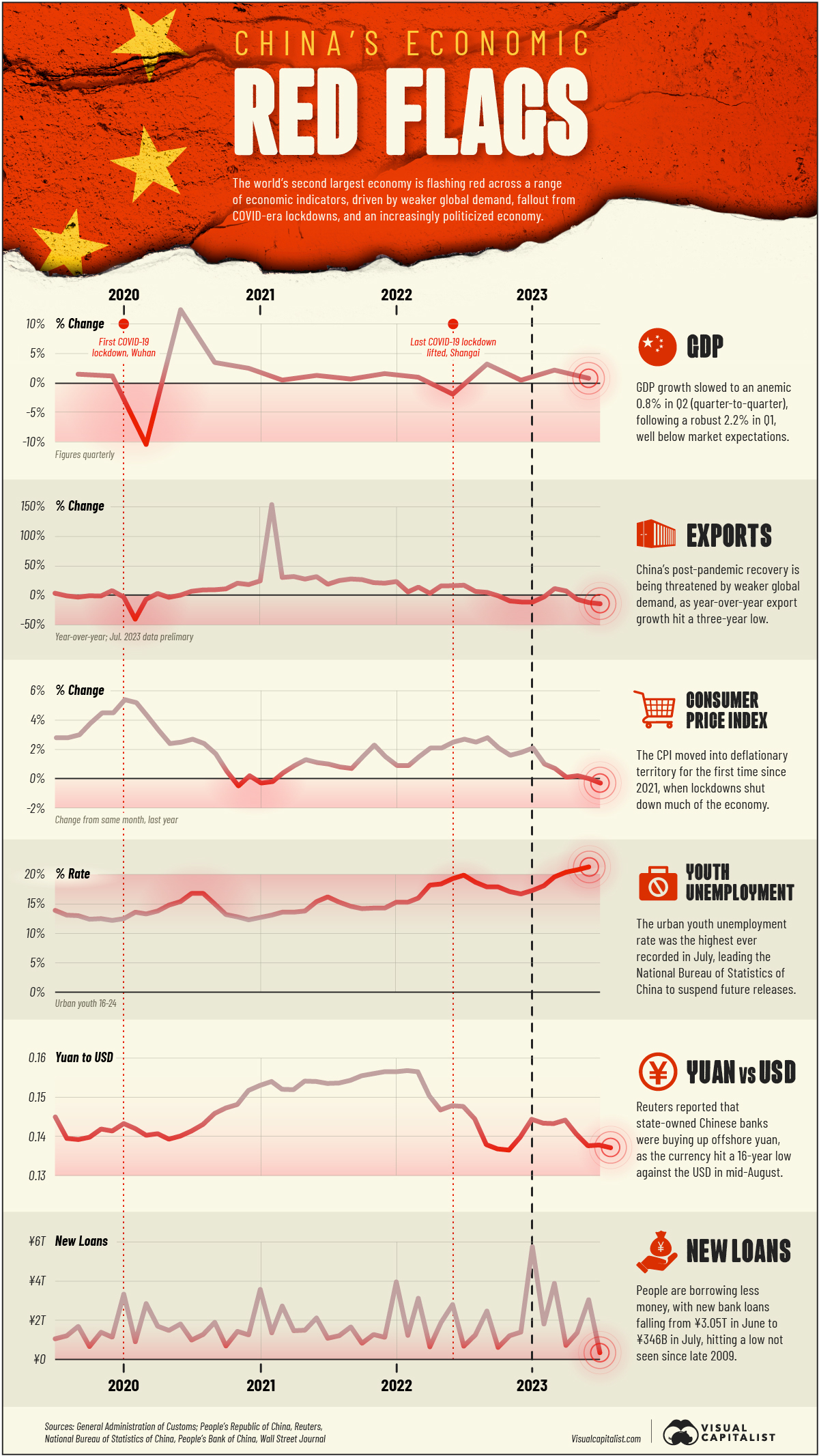 I've said, one of the "benefits" of COVID is we learned the hard way what happens when you source your entire supply chain to one region. When China's economy shutdown several times due to COVID the rest of the developed world realized they needed to diversify. Their economy is struggling as shown by this graphic from the Visual Capitalist.