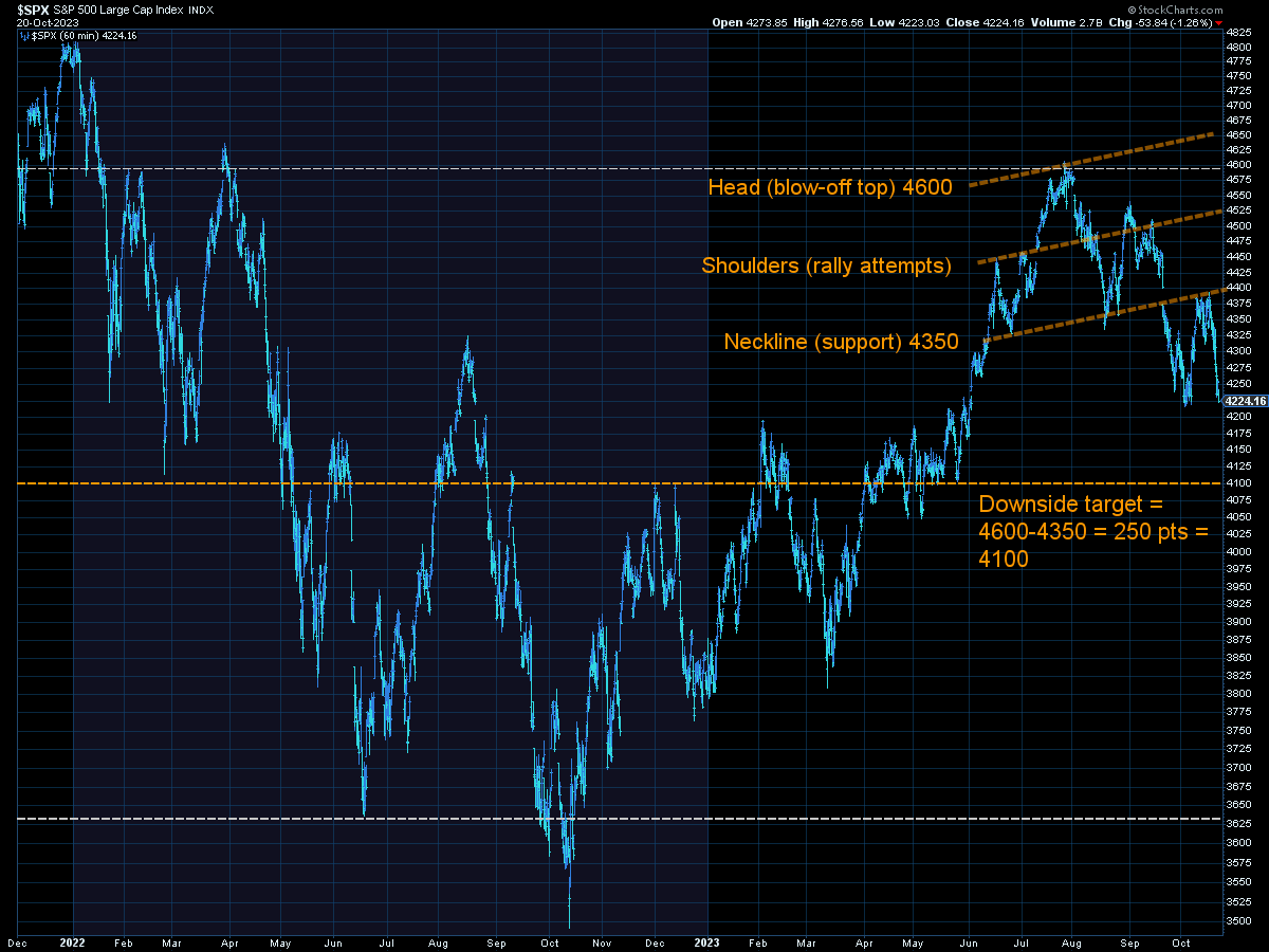 The S&P made a valiant attempt two weeks ago to get back on track. It failed. The "head & shoulders" blow-off top pattern I identified in mid-September remains in play.