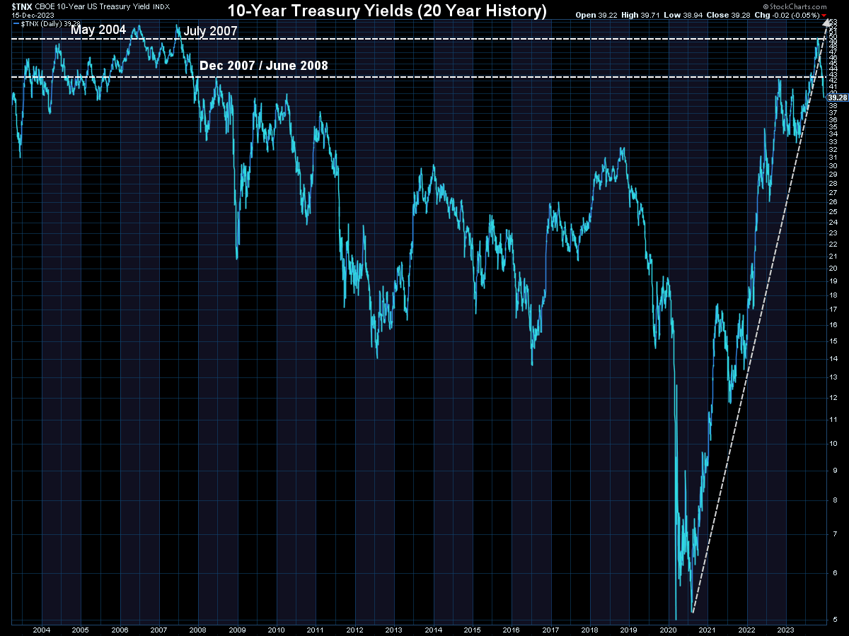 Longer-term, rates are still higher than we enjoyed in the 2009-2019 expansion. Structural inflation likely has adjusted higher meaning we may not have much more room on the downside for rates (unless we head into a recession, which would be very bad for stocks).