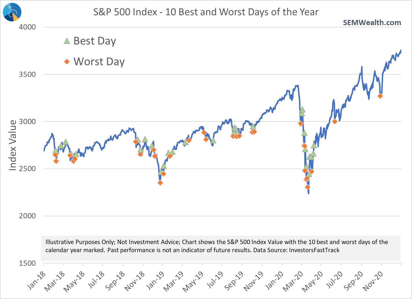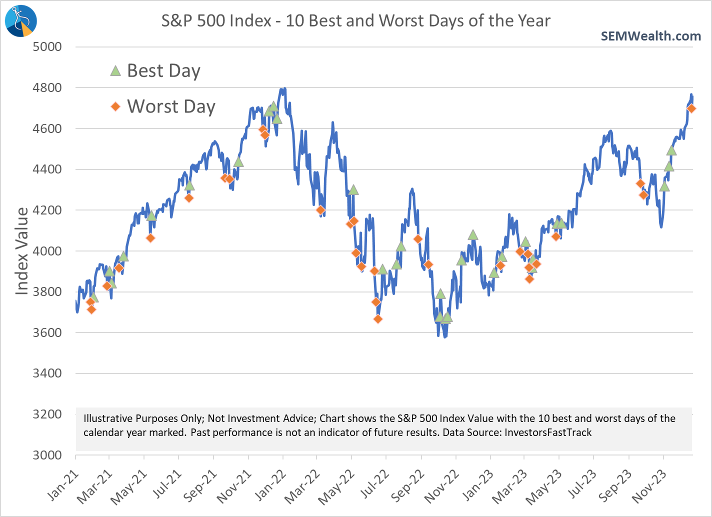 Another advisor called me on Friday to wish me a Merry Christmas and said, "I'm so glad we found you. It allows me and my clients to enjoy the holidays knowing you're watching our back." That is the key to the value SEM brings to our clients and advisors. While we do not have the models to always predict when the best or worst days may occur, we do have a solid track record of sidestepping the majority of the downside. We don't need to participate in the "10 best days" because most of the time those 'good' days occur inside of a scary time in the market. We have the data on our side.