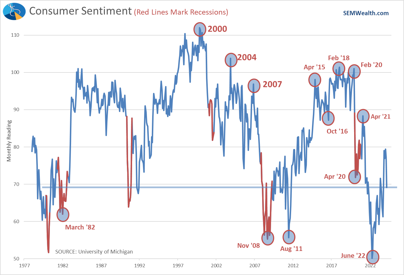 Last week we talked about the overall negative sentiment towards our economy expressed by likely voters (click here for the data). As we 'normalize' away from the post-pandemic, stimulus fueled surge we should expect a consumer who doesn't feel 'good' to slow their spending. The latest Consumer Sentiment readings highlight the current mood with sentiment now below the April 2020 levels.