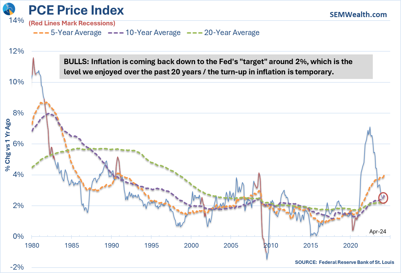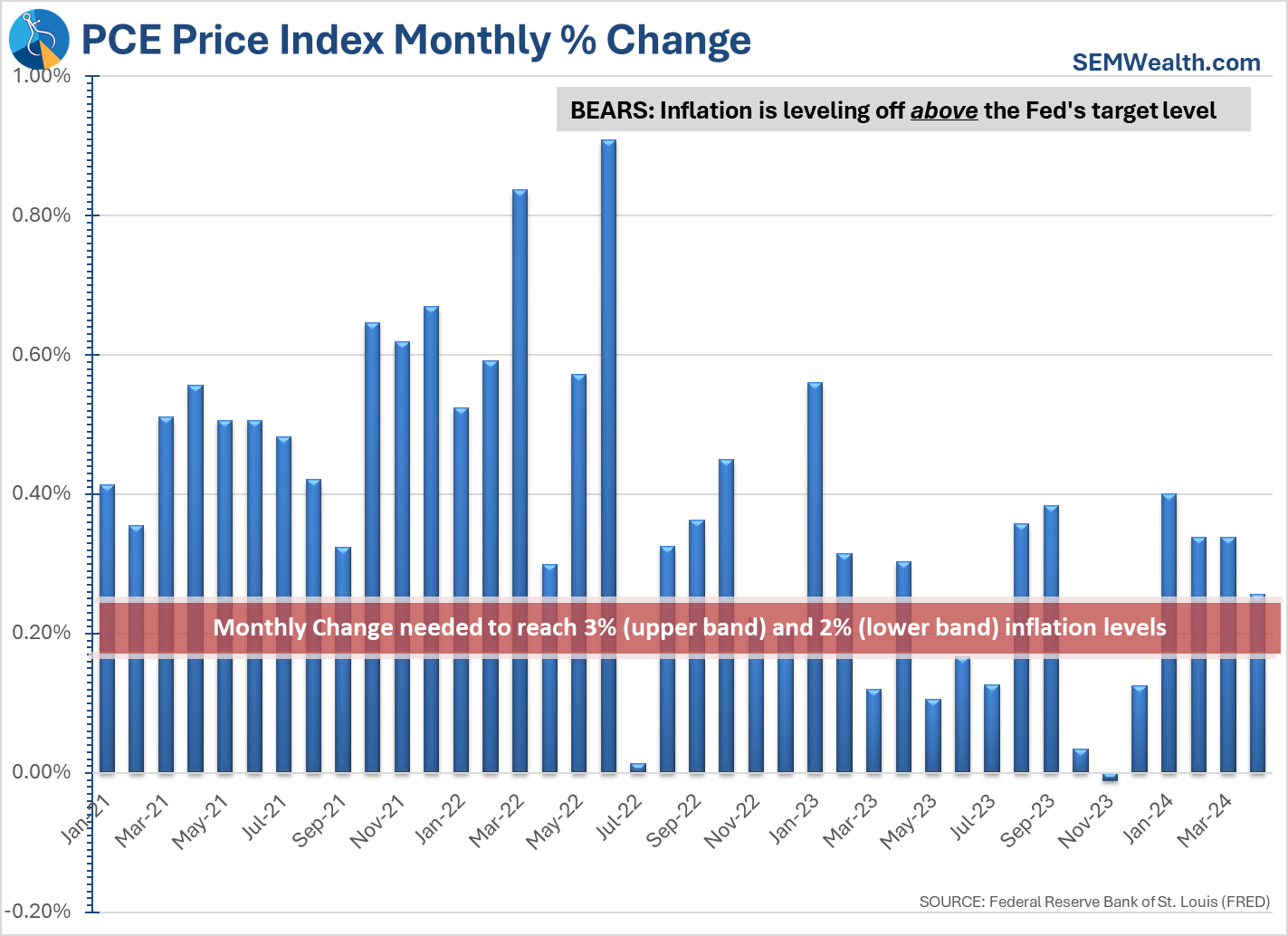 Despite the bulls' best efforts to describe the PCE Price Index (the Fed's preferred measure of inflation) as "slowing", inflation does not appear to be moving quickly enough to the Fed's target level of 2%.