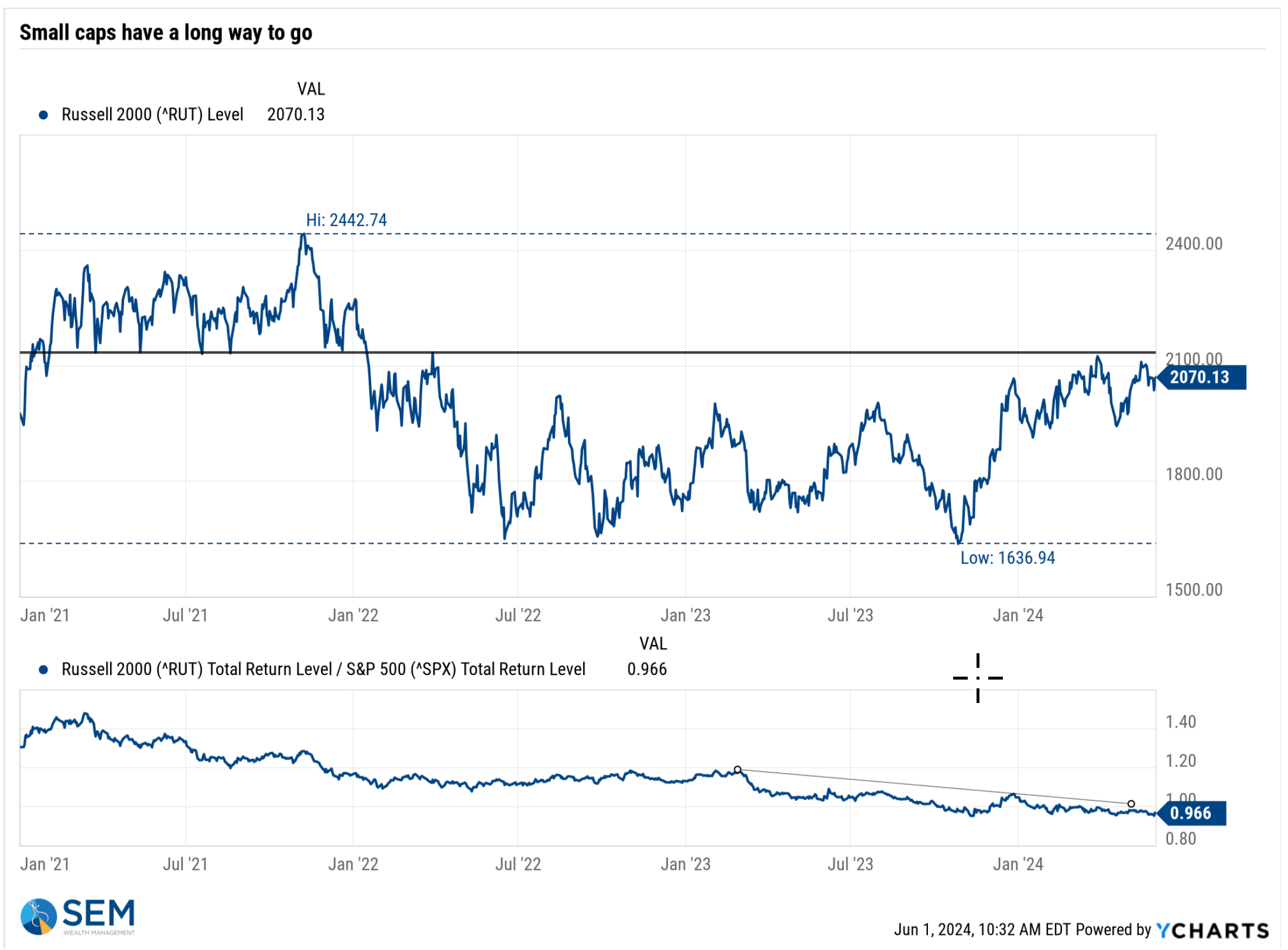 Speaking of 'broadening', small caps continue to lag large caps.